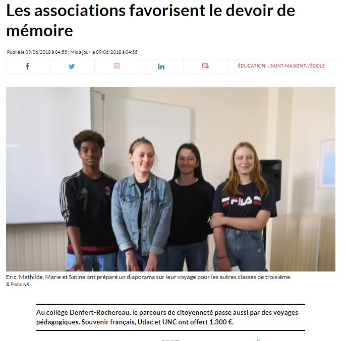 La Crèche : l’aide précieuse du Souvenir français pour effectuer les voyages scolaires mémoriels