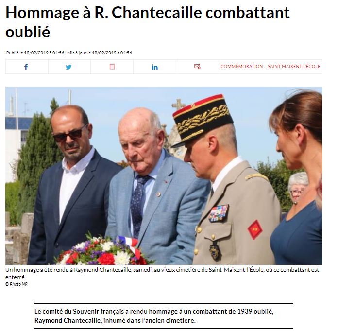 Comme chaque année depuis 2018, le Souvenir français publie une revue spéciale mettant à l’honneur 100 combattants. Pour le numéro de 2023, le comité de la section de Saint-Maixent-l’École, par l’intermédiaire du Crèchois Pierre Robin, a proposé de mettre à l’honneur Camille Thebault, dont la tombe se situe au cimetière de La Crèche, pour illustrer les combattants de l’année 1943.