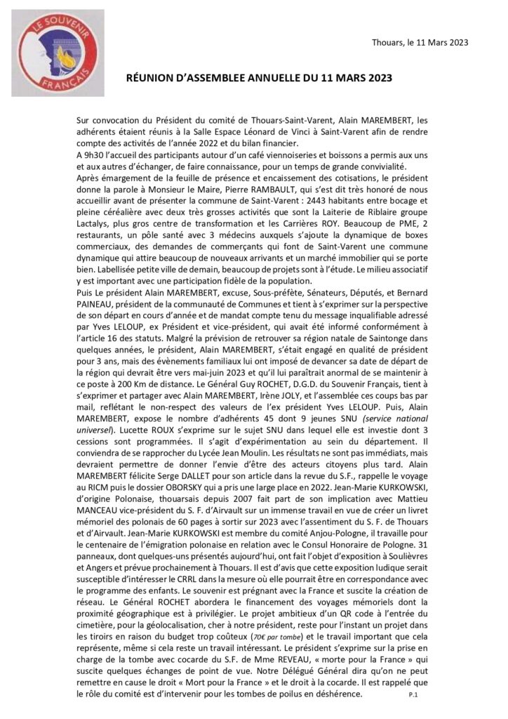 Réunion du Comité du Souvenir français de Thouars Saint-Varent à Saint-Martin de Sanzay avec la présence du député Jean-Marie Fievet.