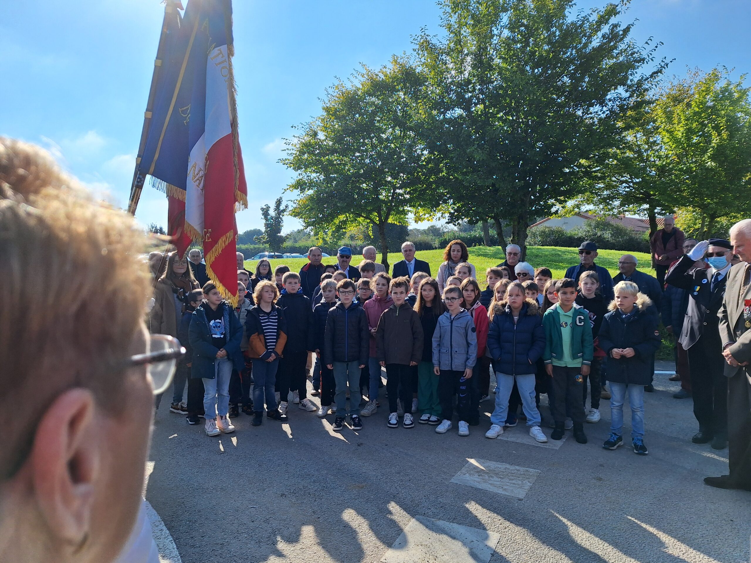 Inauguration du rond-point du Souvenir français ce matin à Saint-Martin de Sanzay pour le comité de Thouars Saint-Varent par Mme la maire de la commune et Mme Irène Joly présidente du Comité en présence du DGSF 79, des membres, des porte-drapeaux et surtout d’une classe de l’école primaire qui a chanté La Marseillaise.