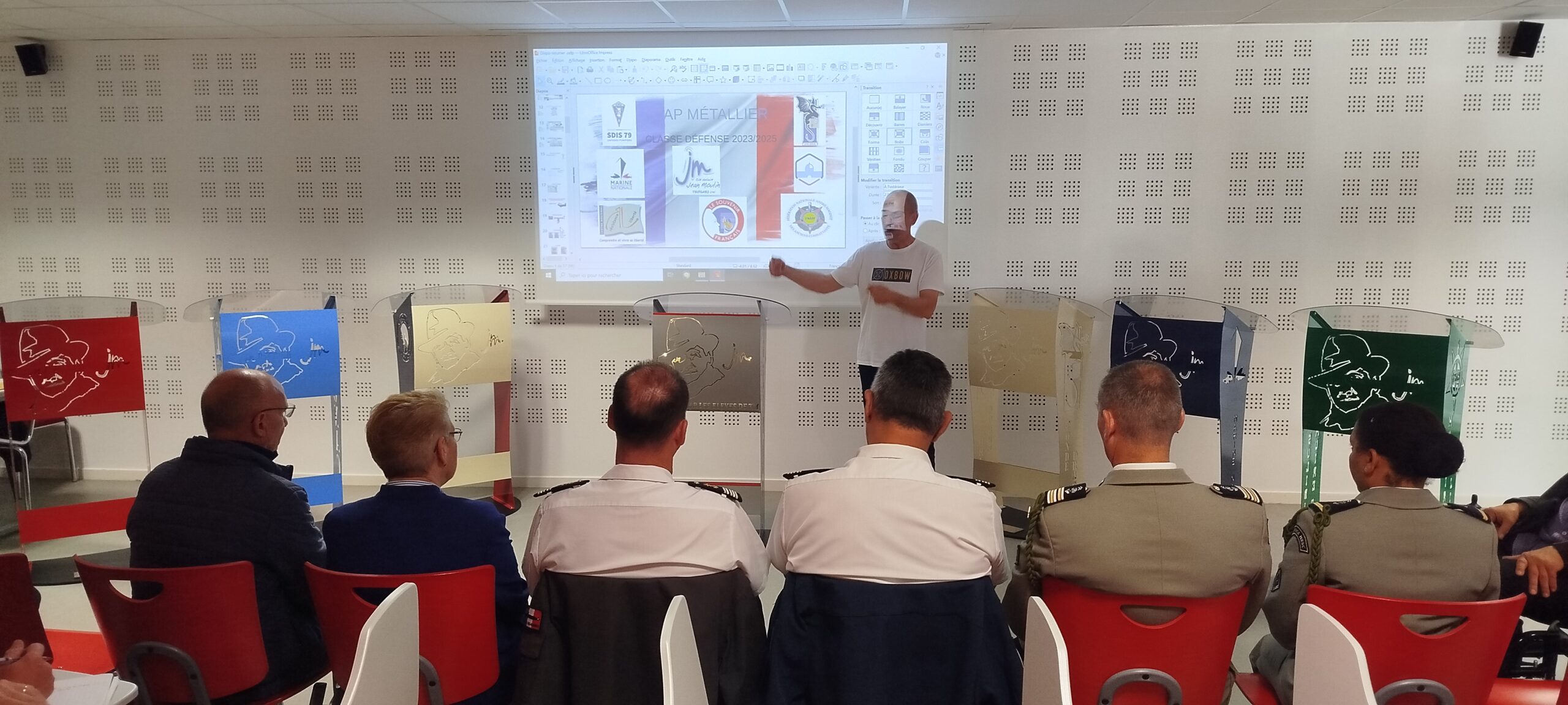 Cérémonie de remise des pupitres aux différents partenaires de la classe défense du lycée Jean Moulin à Thouars.